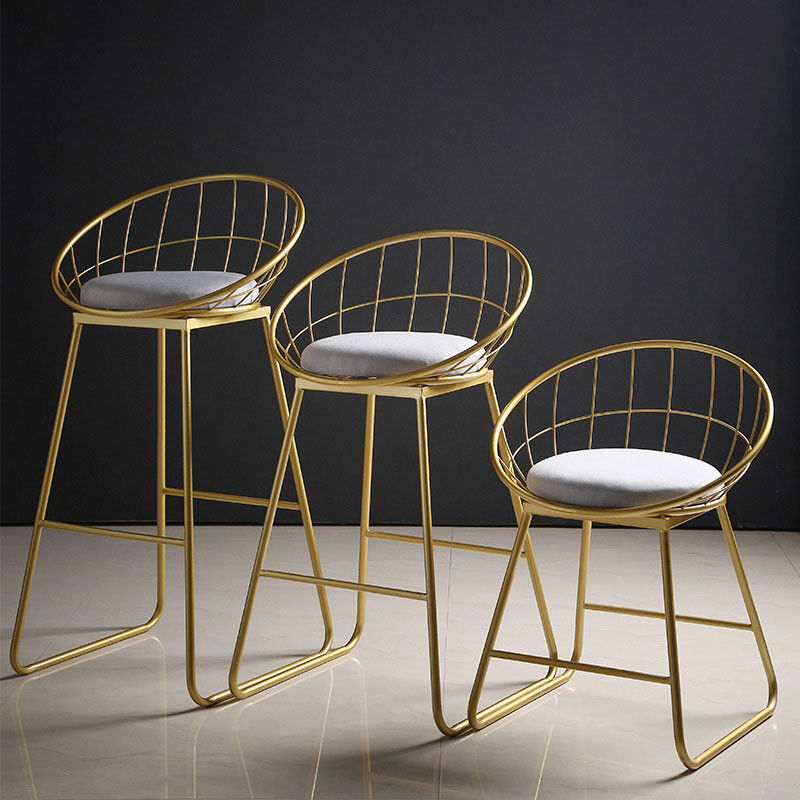 Bar Stools Nordic Tall Gold Metal Velvet Back Counter High Chair
