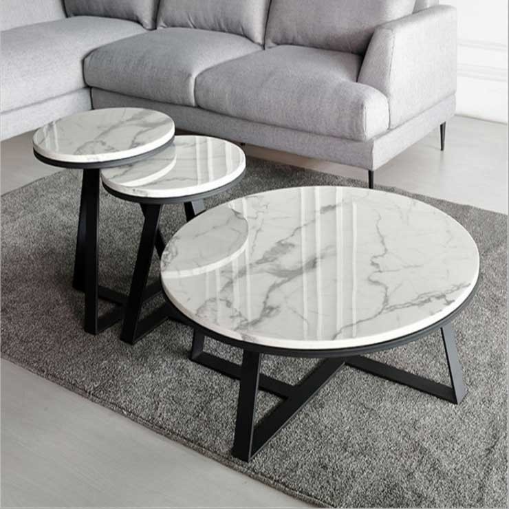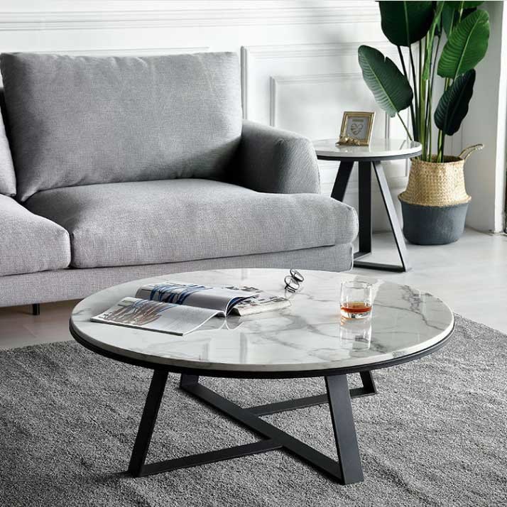 Round Center Table Stainless Steel Base Marble Top Low Tea Table