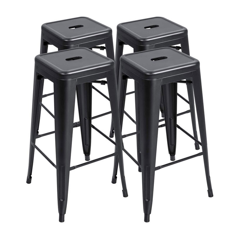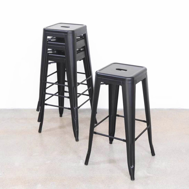High Foot Bar Chair Iron Industrial Stackable Bar Stool Black Seater