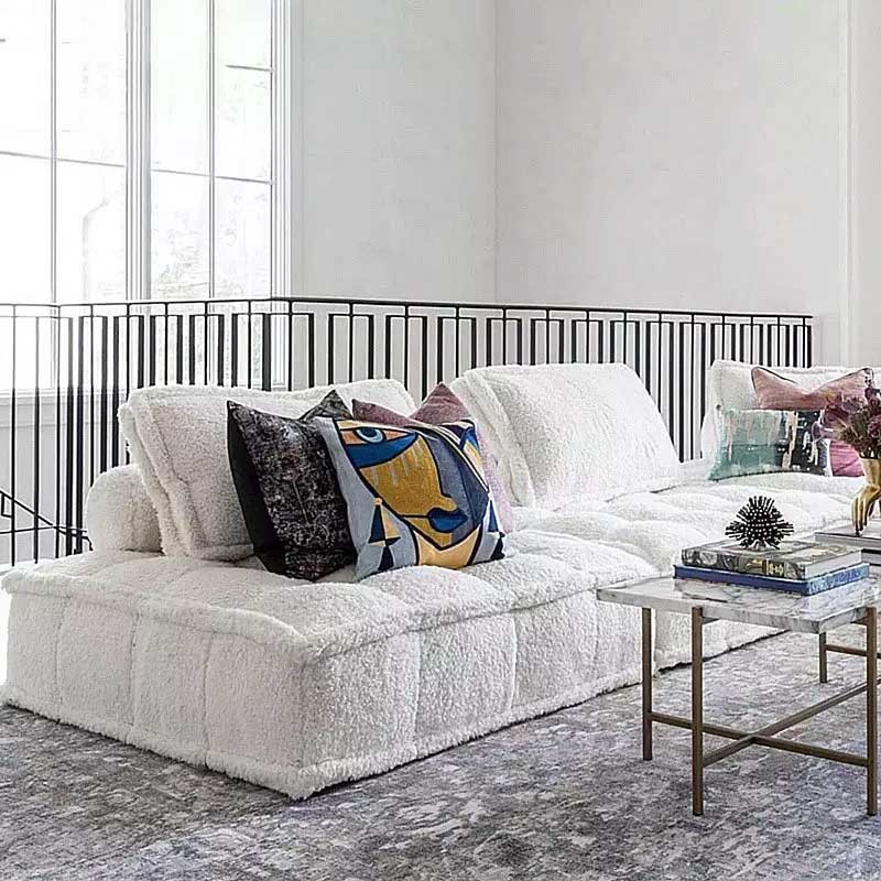 This is a magic cube modular sofa with various shapes, which is between the sofa and the couch.