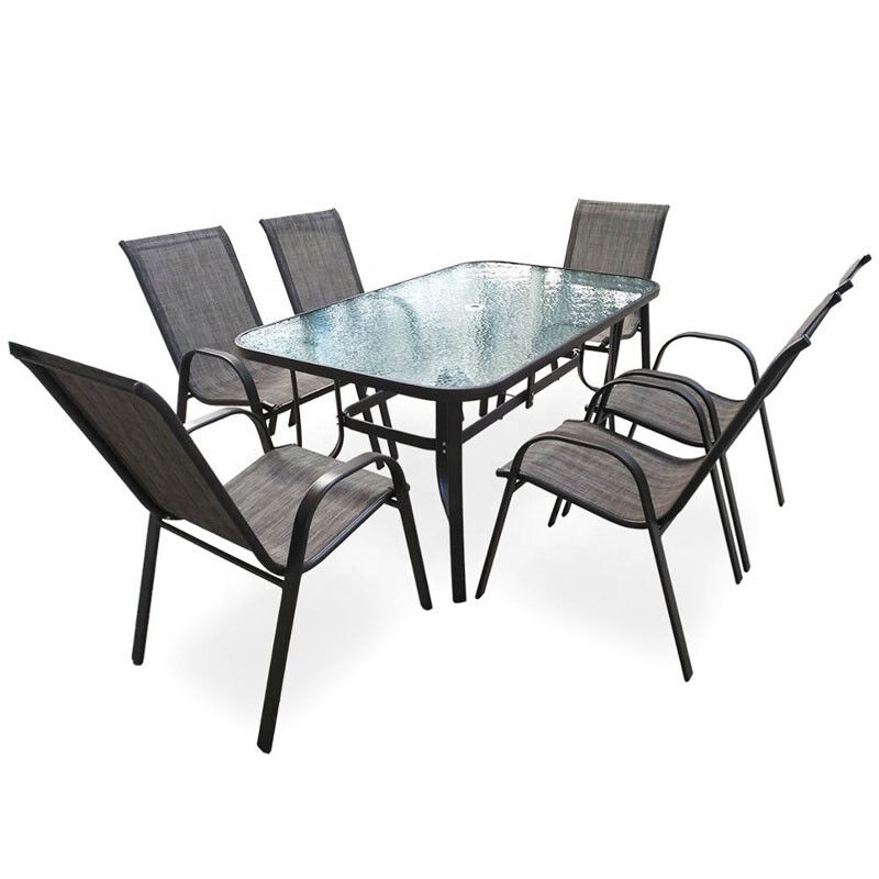 7 Piece Modern Metal Steel Outdoor Patio Conversation Dining Set